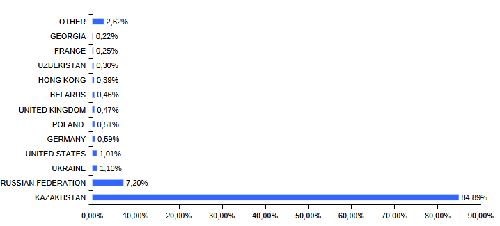 .KZ (12.2025) доменінде тіркеуді шет елдер бойынша тарату