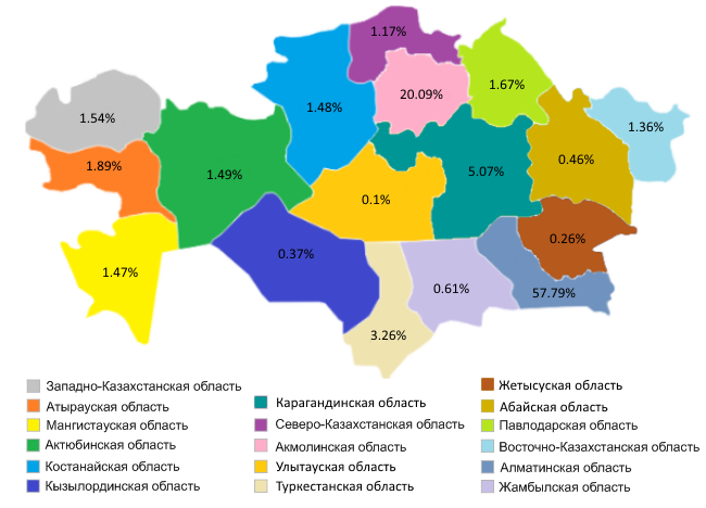 .KZ (12.2025) доменінде тіркеуді ҚР обылыстары бойынша тарату